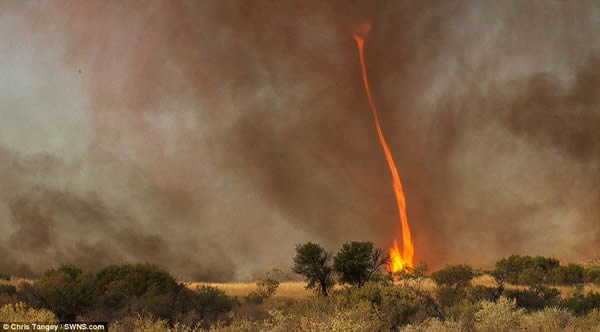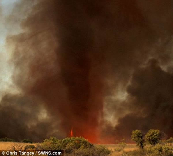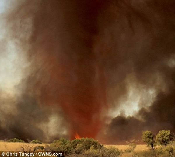 据克里斯介绍,当时没有一丝风,而且气温也只有25摄氏度,可就是在这种情况下,该“火龙卷”气旋却神奇生成,并持续了2分钟,这在澳大利亚是非常罕见的。