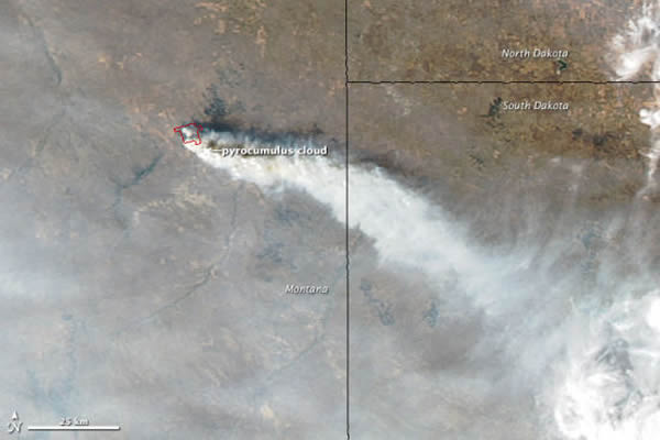 2012年9月17日,整个美国西部仍然有众多野火在继续燃烧,其中有些野火已经燃烧了数月,也有些是在刚刚过去的几周内燃烧起来的。最近一起火灾是2012年9月14号燃起的蒙大拿州杜根(Dugan)野火,这场野火从卡斯特国家森林公园(Custer National Forest)内开始。