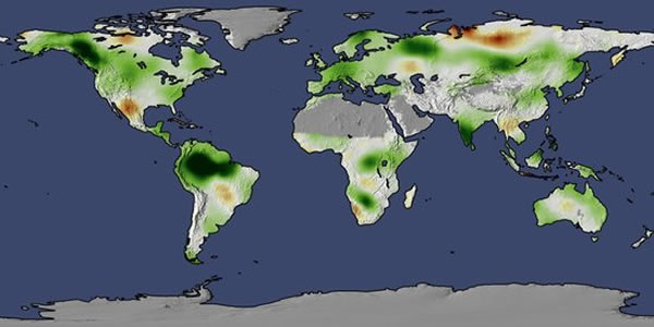 过去十年间史蒂芬-瑞宁一直都在通过监测地球绿色植物的两颗卫星来研究植物的生长状况。通过结合可追溯到1982年的卫星观察数据,他推断陆生植物的生长已经基本保持不变。他在为《科学》杂志所写的一篇文章中详细说明了他的发现。