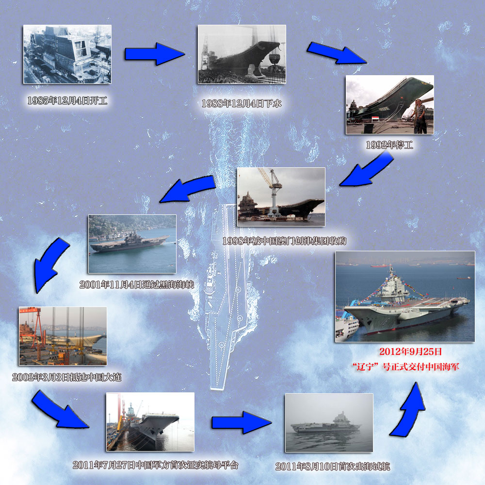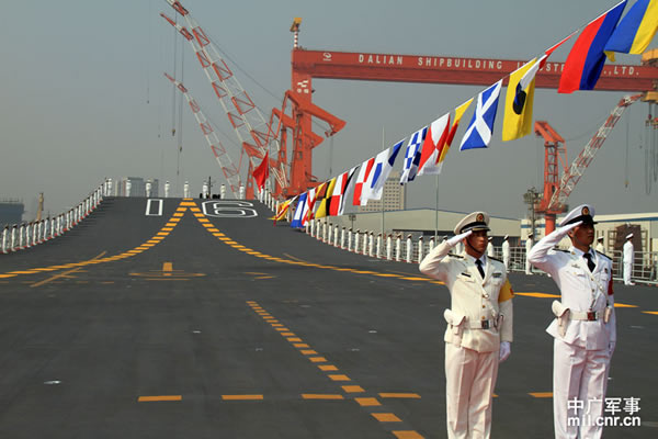中国首艘航空母舰“辽宁”舰25号在大连造船厂正式交付海军。这标志着中国海军拉开了从近海走向远洋的大幕。