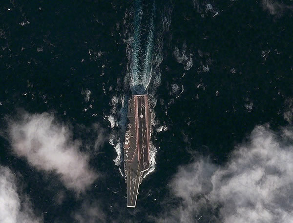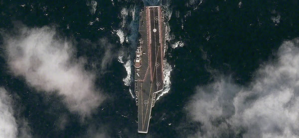 美国DigitalGlobe公司在其网站上公布了其QuickBird遥感卫星拍摄到的中国航母试航图像。这张照片拍摄于2011年12月8日,地域位于黄海水域。