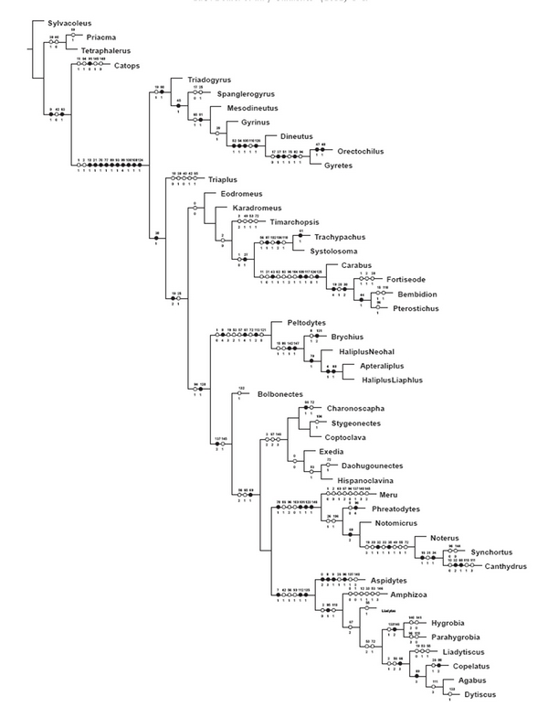 甲虫是地球上种类最为丰富的一个昆虫类群,其中肉食亚目是常见类群。因其重要的生态和演化意义,肉食亚目甲虫的系统发育关系一直是研究热点。该类群中生代化石记录较为丰富,但许多化石的分类位置仍有疑问,并且化石类群的高阶系统发育关系仍有很大争议。