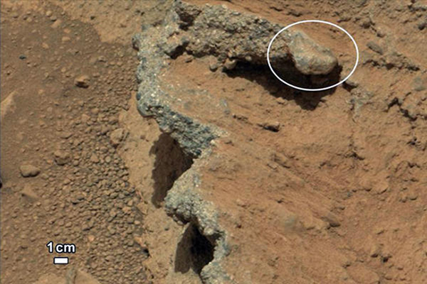 科学家在“好奇号”传回的火星照片上发现古河床遗留的碎石