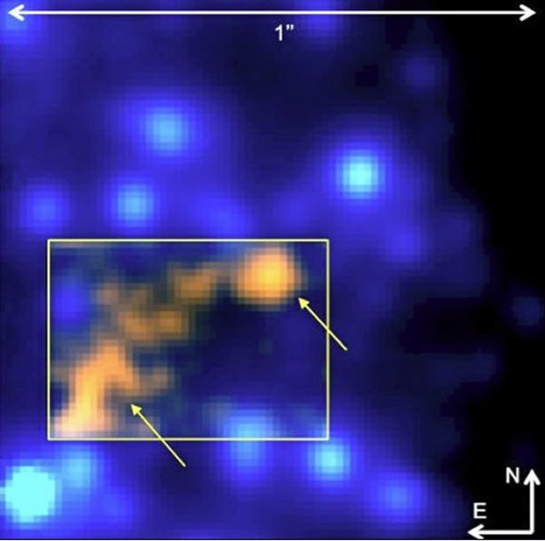 天文学家们并没有直接观测到在盘状物质中央的昏暗的红矮星,而是从被黑洞解体的盘状物质形成了接近1000亿英里直径的扩展型星际气体云来推断其的存在。从表面上看,这颗红矮星的运行轨迹如同一颗彗星,有着一个酷似彗核状的前端并拖着长长的尾巴,被黑洞引力打乱而剥离的物质形成了尾随其后的物质带。类似的遭受到外界天体引力或者宇宙事件摧毁的原始行星盘景象可以在猎户座星云中观测到,因为这里存在来自星系中央恒星团吹来的强烈恒星辐射。
