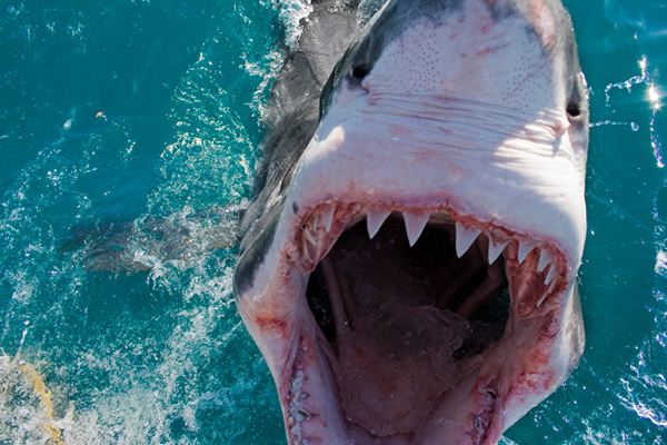 不过,他们还是设法拍下了这次与大白鲨“亲密接触”的惊险场面。照片中的大白鲨张着大嘴,锋利的牙齿距摄像机镜头不到30公分。