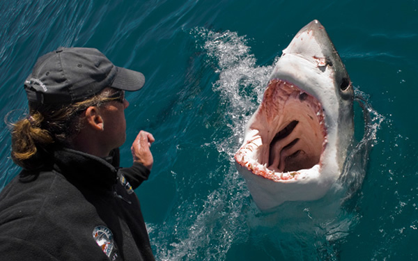 从事鲨鱼拍摄事业的大卫后来回忆道,当时他与同伴们乘坐一条30英尺(约9米)长的船上,突然一只大白鲨将头探出水面,向船袭来。随后大约还有5头体长 16英尺(约4.9米)的鲨鱼围着他们的船,让他们无比畏惧。