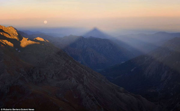 意大利罗西阿梅龙峰由光影产生的“虚幻山峰”