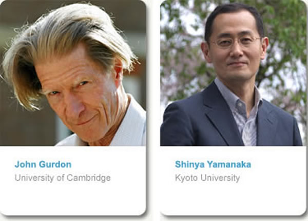 2012年诺贝尔生理学或医学奖揭晓,英国科学家约翰·戈登(John B. Gurdon)和日本科学家山中伸弥(Shinya Yamanaka)获奖