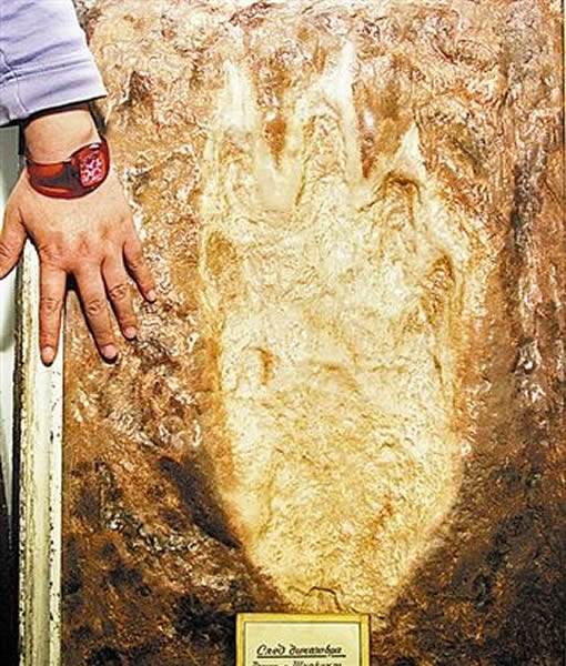 在地质博物馆里,摆放着两个从帕米尔高原上采集而来的巨大恐龙脚印,旁边还摆放着几枚恐龙化石。馆员阿布拉赫说,这些恐龙为侏罗纪时期的巨型恐龙,体重在10吨以上才可能踩出这样的脚印。脚印能保存下来则需要合适的砂岩,这种岩石不能太软,也不能太硬,只有如此才能保存恐龙的脚印遗迹化石。