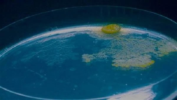 当黄色的粘液菌移动的时候会留下一道浓厚的半透明粘液,研究人员发现粘液菌把这种胶状痕迹当做一种前行的记忆