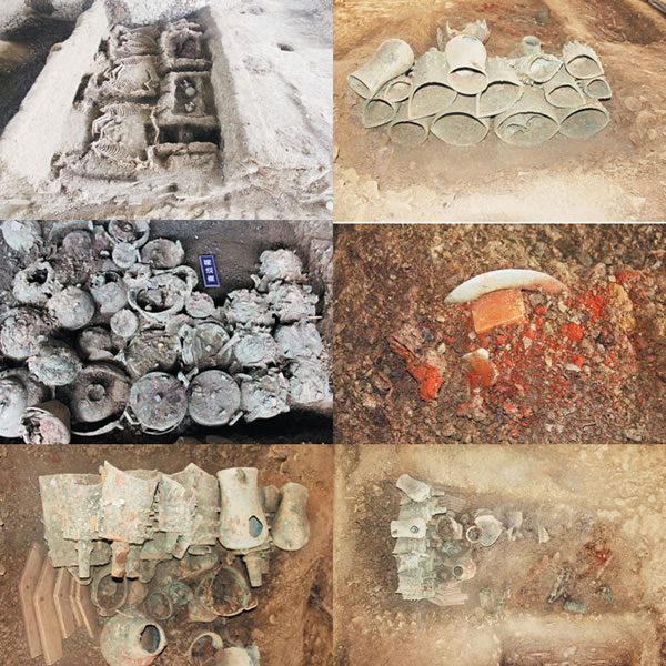 2012年春节前夕,天上王城景区管理委员会在崮顶修建水上娱乐项目的施工过程中,意外发现了部分青铜器及其残片。临沂市文广新局、沂水县文广新局闻讯后,立即赶往现场,责令停止施工,对受损文物遗迹进行覆土保护,同时收缴了出土文物,并及时上报山东省文物局。省文物局责令山东省文物考古研究所赶赴现场考察,确定为一座古墓葬(M1),需进行抢救性发掘,随即上报国家文物局。