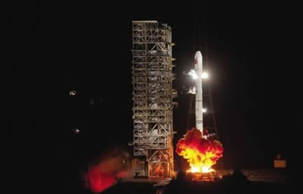 今年9月19日,载有第十四颗和第十五颗北斗导航卫星的“长征三号乙”运载火箭的发射点火瞬间。