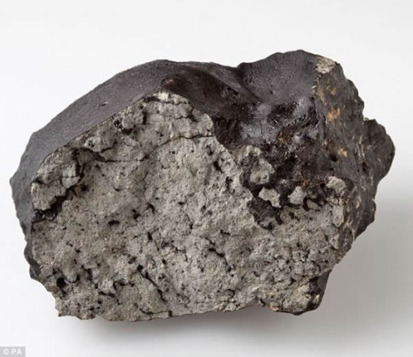 这块重量约为1.1公斤的陨石于去年坠落在摩洛哥小镇Tissint附近的沙漠中,现在它正在伦敦自然历史博物馆中展出