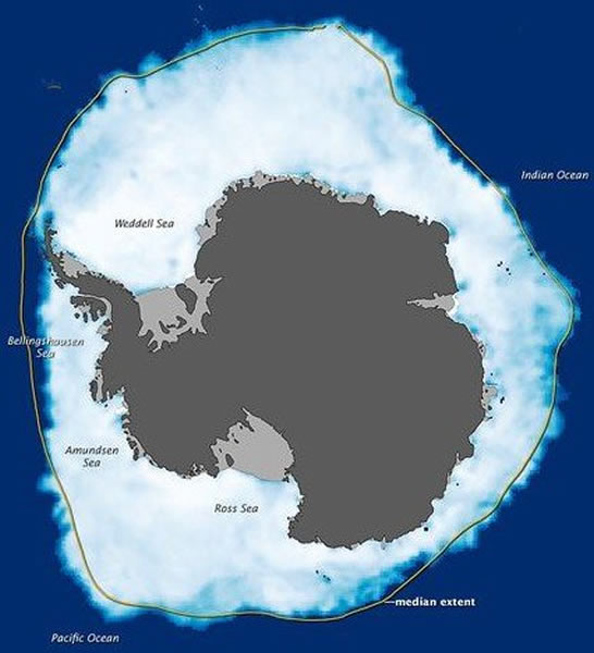 尽管目前关于地球变暖、海冰融化以及海平面上升的消息频繁出现在媒体的头条,但有气候分析员在本周指出在南半球的冬季,南极海冰出现大块浮冰的总量实际上是不断增加的。事实上,在九月下旬,卫星数据显示南极洲周围的海冰区域达到了有史以来最大的范围,根据美国冰雪数据中心在本周四的公布,南极海冰区域面积为751万平方英里,约为1944万平方公里,并且还呈现出缓慢增长的趋势,以约1%的速度增加。