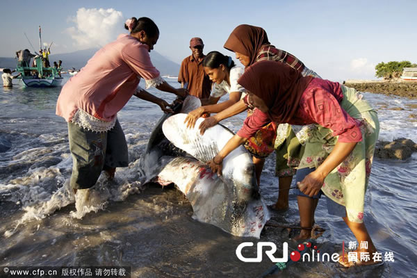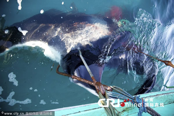 印尼渔民捕捞屠杀蝠鲼 来源: 蜘蛛网 时间:2012年10月17日 12:57 渔民在印尼岛屿捕捉蝠鲼 渔民在印尼岛屿捕捉蝠鲼 渔民在印尼岛屿捕捉蝠鲼 渔民在印尼岛屿捕捉蝠鲼 这些令人震惊的图片是由环保主义者、美国摄影师Shawn Heinrichs拍摄的,意在提高增强世界范围内对于蝠鲼捕捞情况的关注。其中一张悲剧性的图片显示,一条小蝠鲼慢慢的死在妈妈的肚子上。另外还有一些图片展示屠宰蝠鲼、取腮的过程。 国际在线 上一篇 下一篇 TAG: 蝠鲼 印尼