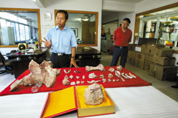 李伟民的办公室里摆放着三水盆地最近发现一批动物化石