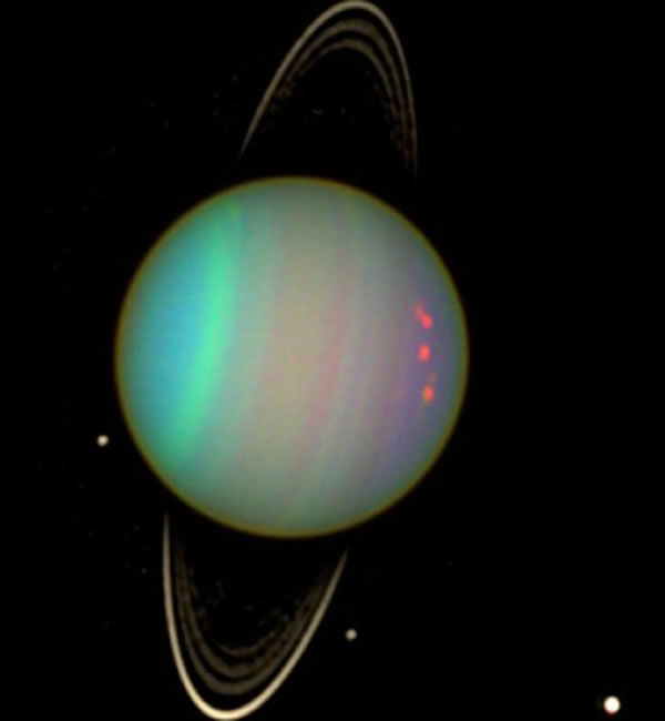 科学家使用位于夏威夷莫纳克亚山的凯克望远镜详细探测了这颗太阳系第七大行星难以置信的怪异天体,图像中所揭示的行星深蓝色大气主要由氢气、氦气以及甲烷所构成,而天王星大气中的风由东吹向西,速度达到每小时560英里,尽管目前并未发现更多的能量来驱动怪异风的运动。