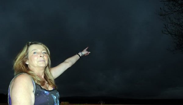 今年50岁的莫拉格-里奇半夜时被空中的闪光惊醒,她女儿的未婚夫拍摄到空中4个闪烁盘状飞行物的视频图像。莫拉格说:“我们生活在乡郊地区,从未看到夜空中出现如此奇特的神秘飞行物,当时我醒来向窗外看去,这些闪烁的盘状飞行物好像正在移动飞行中。我非常忧虑,站起来向窗外观看,却不知这究竟是什么飞行物,好像它们正在窥视着我,因此我走到屋外告诉其它人都一起来看个究竟。”