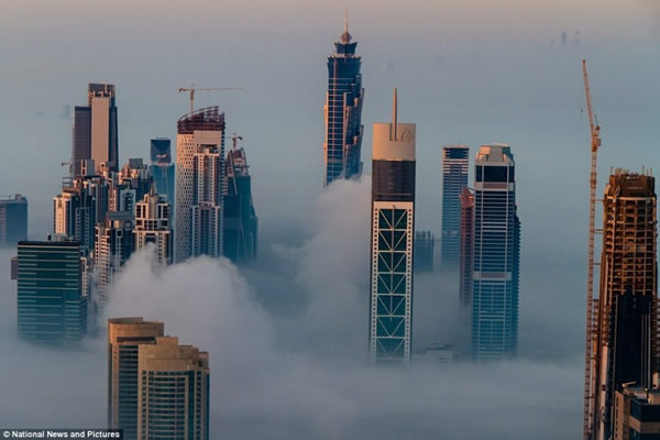 迪拜是阿拉伯联合酋长国的7个酋长国之一,每年的这个时候,迪拜的清晨都会出现雾海翻腾的壮观景象。雾海是白天高温和湿气与晚上的温度下降这种反差的一个结果。