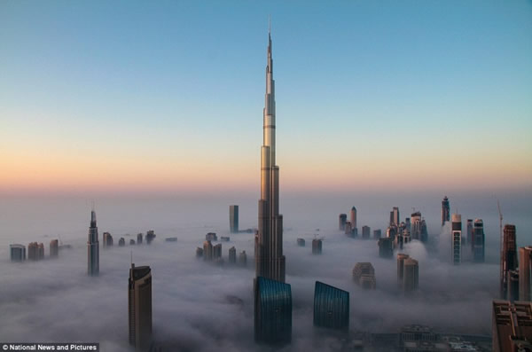 迪拜出现的雾海由一种自然现象所致。每年的这个时候,气温开始下降,湿气与冷空气相遇后,形成翻滚的雾海。日出后,雾海被逐渐驱散。这位现年32岁的摄影师表示:“座落于迪拜心脏地带的世界第一高楼被云浪和浓密的白海环绕。这是一个自然奇观。”