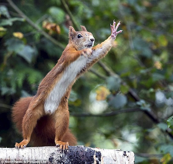 据英国《每日邮报》10月20日消息,英国野生动物中心一只红松鼠得到坚果后疯狂热舞,惹人喜爱。 英国萨里郡一位野生动物爱好者莉莲·金拍下了这些照片。莉莲称,萨里郡林菲尔德附近的英国野生动物中心人工养殖20只红松鼠,安东尼最引人注目。安东尼在工作人员前来喂食时总是在空中挥舞他的爪子上蹿下跳,以便第一个抢到榛子。得到坚果的安东尼满心欢喜,扭动身子跳起舞来,舞步堪比当年《周末夜狂欢》的男主角约翰·特拉沃尔塔。
