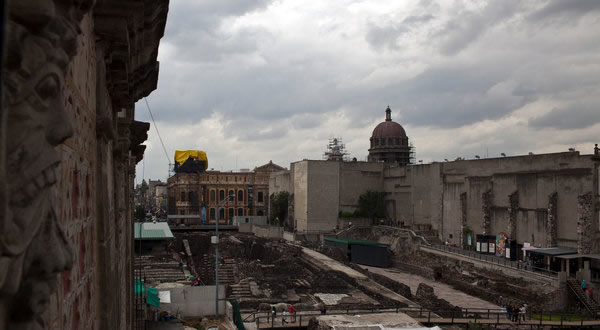 发掘遗址位于这个大都会的中心,人们在这里还找到了其他的发现。就是在这里,阿兹特克人盖起了他们的宏伟神庙,而后,西班牙征服者在这里奠定了他们新帝国的根基。