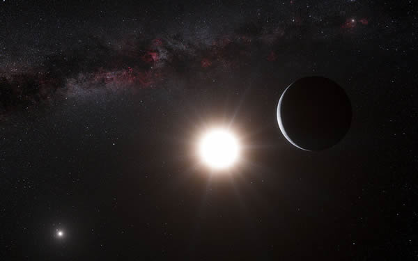 艺术家的概念图显示新发现的行星半人马座阿尔法星Bb,它位于距离地球4.3光年的三星系统。