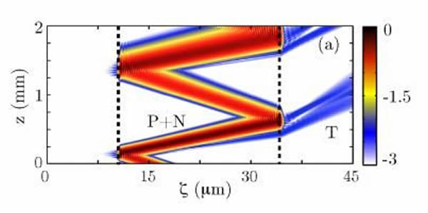 2008年,莱昂哈特开始思考黑洞类似激光的可能性,并利用两道波长不同的激光脉冲模拟视界。两道激光脉冲均通过激光介质点燃,但是它们却以不同速度穿过空腔。第一道光束改变了材料的折射率,因此第二道脉冲必须放慢速度,尽管最初它比第一道光束速度“更快”。这意味着第二道脉冲永远不会赶上黑洞,它会慢慢达到相对静止状态。也就是说,它无法从激光介质中逃逸出来。这与视界类似。但是要知道,物理学家从此开始利用这种方法演示与霍金辐射相似的等式。这里是激光可能进入的地方。如果类似的黑洞通过霍金辐射损失质量,我们也许就能通过这种方法模拟光发射。