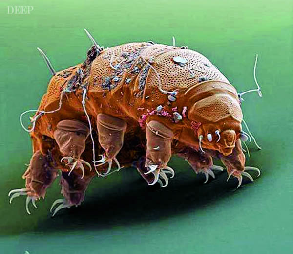 它将需要有一个保护壳,或许搀和了铅之类的重金属;它将会有强大的肢体和锋利的爪子,使其在强烈的辐射爆发期间能在地上挖洞。最为重要的是,它将需要有效的基因修复机制,来修复对其细胞不可避免的辐射伤害。纯属幻想?或许不是。类似的生命形式在地球上也有,虽然小许多。它叫水熊虫,存活在滚烫的高辐射地区。岩质“超级地球”的居民有可能看上去与它惊人的类似。