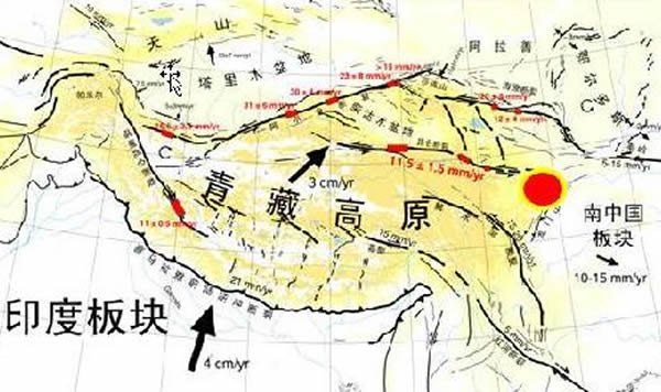 据张双喜介绍,青藏高原在印度板块向北挤压的作用下,具有整体向北和向东运动的趋势。