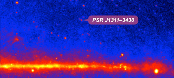 德国马克斯·普朗克研究所科学家利用费米伽马射线望远镜的观测数据发现了这颗脉冲星,这也是首次利用高能伽玛射线发现毫秒脉冲星。