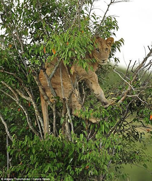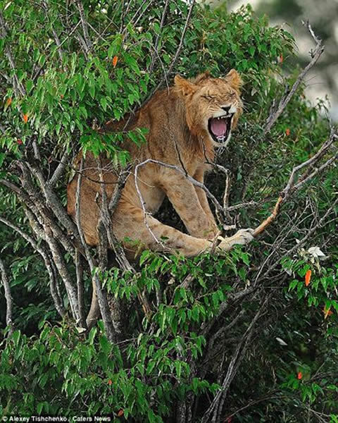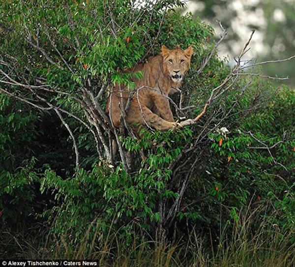 日前,俄罗斯业余摄影师阿列克谢(Alexey Tishchenko)在肯尼亚马赛马拉国家公园里拍摄到一只幼狮被困树上,想从困境中解脱的场景。