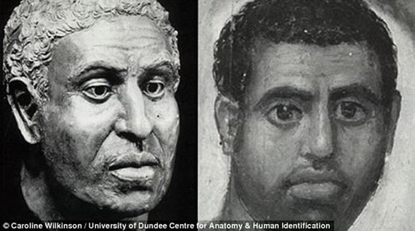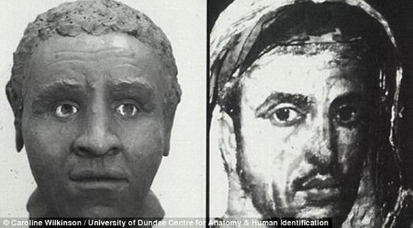大英博物馆一位50多岁男性木乃伊,他长较宽的面孔,浓密的眉毛,扁平的鼻子,CT扫描图像比肖像更显年轻一些