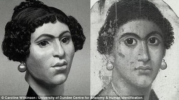 惊人的相似性:大英博物馆内木乃伊肖像(右侧)与木乃伊CT扫描面孔成像(左侧)之间的对比,可清晰地显示死者生前是一位20多岁年轻女子,长着瓜子脸和厚嘴唇