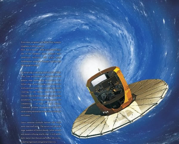 欧洲空间局“盖亚”十亿像素阵列探测器计划于2013年发射升空,开展为期五年的探测任务,科学家估计其将会有一年的任务延长期。“盖亚”将运行利萨如轨道(Lissajous orbit)上,这是一种类周期性的振动轨道,而探测器则处于日地系统中的第二拉格朗日点(L2)上附近。该处是天体观测中一个较为理想的轨道,拥有非常稳定的热环境,可获得比较高的观测效率,并且还具有较低的辐射环境。在“盖亚”探测器轨道运行期间,将不间断地对天空进行扫描,绘制高分辨率的本地星系群地图。