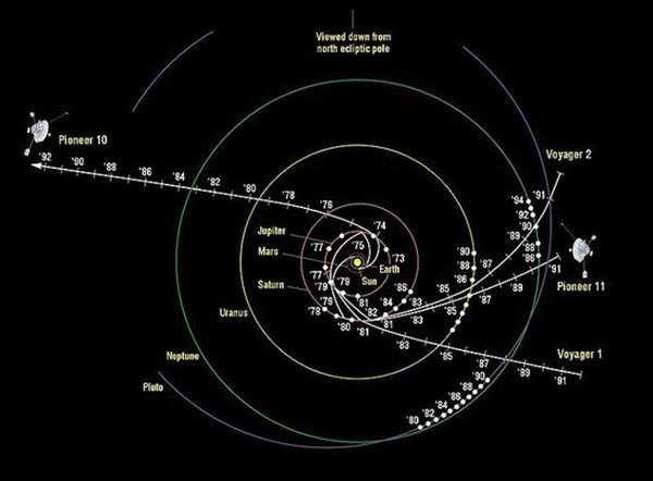 先驱者10号和11号探测器也向太阳系外不同的方向飞去