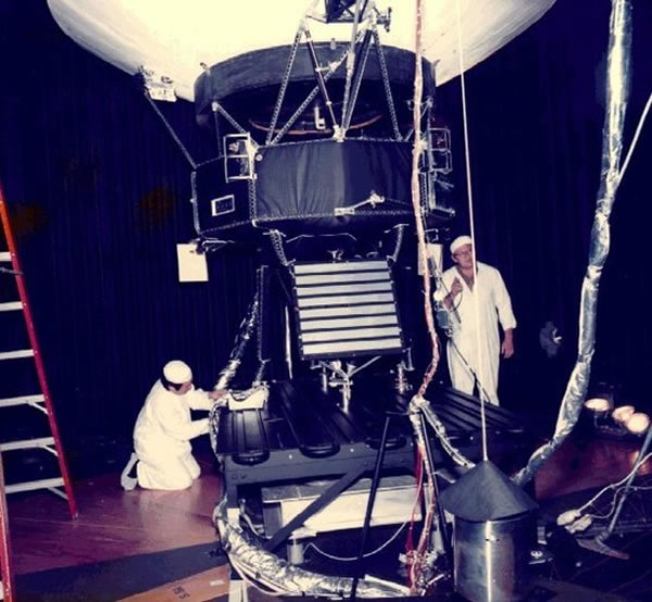 工程师正在卡纳维拉尔角对旅行者探测器进行测试