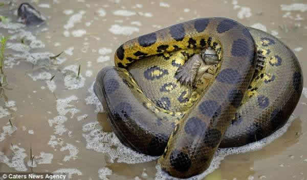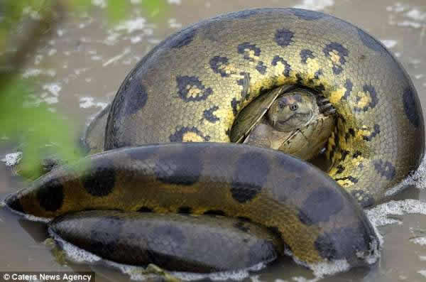 委内瑞拉一条巨型水蟒捕猎乌龟