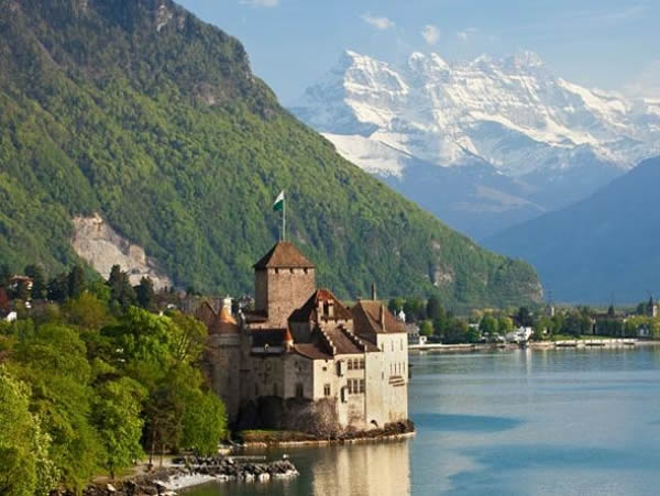 瑞士日内瓦湖畔,建造于约公元1000年的西庸城堡