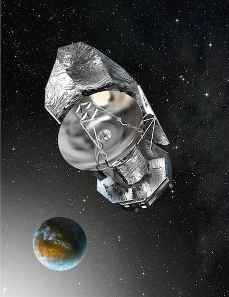 科学想象图:赫歇尔空间望远镜运行于距离地球100多万公里处的第二拉格朗日点