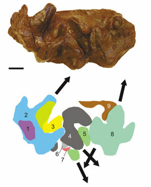 綦江区国土局副局长王丰平介绍,这块足迹化石是近日在莲花保寨中段施工中发现的,足迹长32厘米、宽24厘米,掌纹、指纹都清晰完整。据了解,该化石除右指损坏外,中指和左指完好,脚后跟处厚达5厘米,中脚趾厚度超过10厘米。从厚度上推测,化石主人是一只大型植食性恐龙,已经成年,生活在1亿多年前。