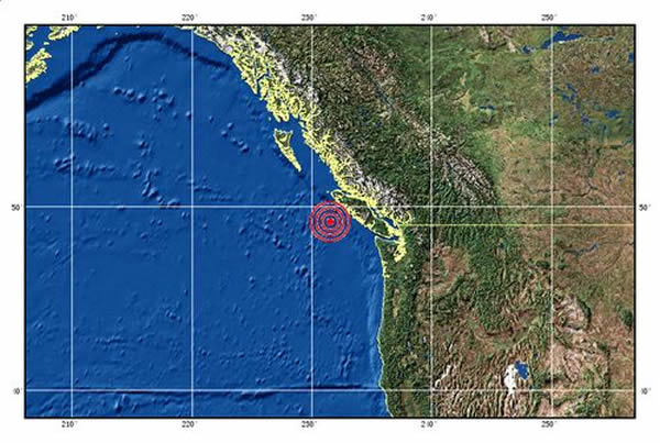 加拿大温哥华岛附近海域发生6.3级地震 来源: 蜘蛛网 时间:2012年11月08日 13:42 温哥华岛附近海域(北纬49.2,西经128.5)发生6.3级地震 红色标记处为发生地震区域 据中国地震台网测定,北京时间2012年11月8日10时1分在温哥华岛附近海域(北纬49.2,西经128.5)发生6.3级地震,震源深度20公里。 上一篇 下一篇 TAG: 地震 加拿大