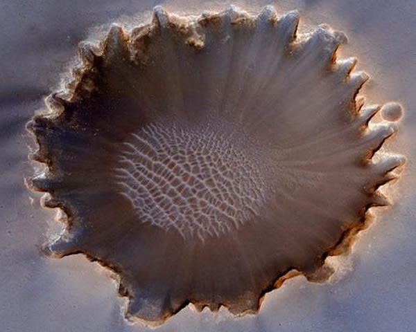 如果你能乘坐飞船飞经火星,你能够向下俯视并且看到宏伟的维多利亚陨坑。这张照片是美国宇航局的火星轨道探测器携带的高分辨率成像分析设备拍摄到的。美国宇航局已经对维多利亚陨坑展开了广泛的研究,包括通过火星漫游者机遇号对它进行拜访。