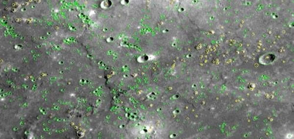 距离我们太阳最近的星球携带着它所遭受的撞击伤痕。美国宇航局的先驱者号太空飞船在2008年1月14日拍摄到这张从未观察到的水星表面照片。美国宇航局一直在借助先驱者号收集的信息来理解水星的地质历史。科学家们正在使用陨坑的数量来确定水星表面的历史年代,换句话说就是他们在一个区域发现的陨坑越多,那一区域的地质年代就越古老。