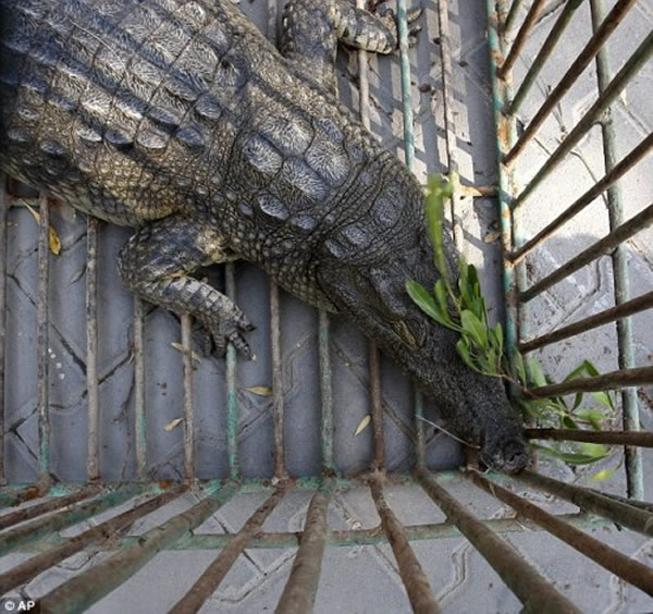 一条长达1.8米的鳄鱼2010年从在地中海城市加沙的一个动物园逃出,有关人员经过近两年搜寻,近日终于把它送回动物园。