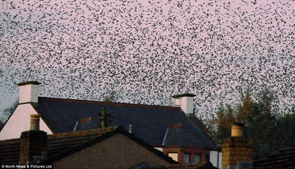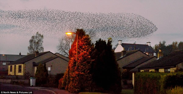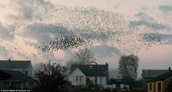 英国苏格兰边境小镇现数百万星椋鸟迁徙奇观