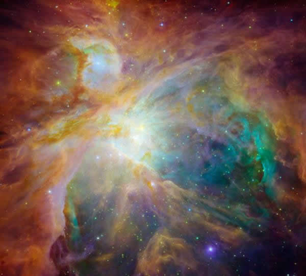 构成猎户座四边形的这四颗亮星是“猎户座大星云星团”的一部分。该星团是一个开放星团(open star cluster),由年轻的恒星组成。有些才刚刚从星云和尘埃中诞生200万年。