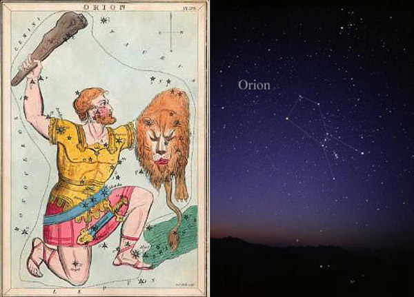 猎户座是天空中最容易识别的星座之一,在它的腰间有三颗显著的恒星排列成一条直线。猎户座可以在每年这个季节的夜空看见(它是冬季星空的标志性星座)。