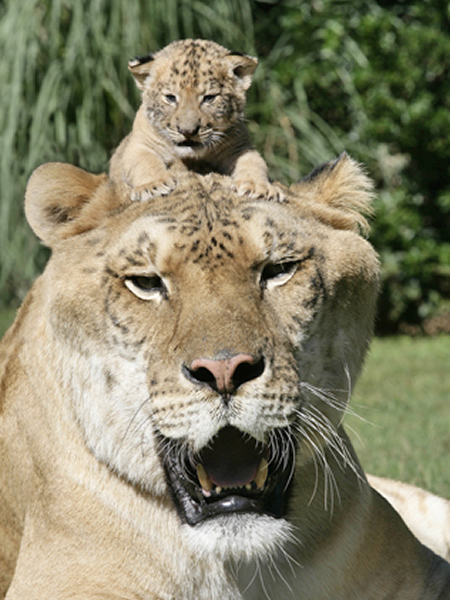 据澳大利亚《每日电讯报》11月10日消息称,十年前,美国极度濒危及珍稀物种研究所发起了这个计划。他们使雌虎与雄狮交配,受孕后生下这种狮虎兽。目前,刚出生4周与8岁的两头狮虎兽在美国北卡罗里娜州一家野生动物保护中心亮相。体型娇小的“狮虎弟”每天可增重一斤,满一岁时可达165公斤。而已成年的“狮虎哥”则已有406公斤,半直立时可达183厘米高。