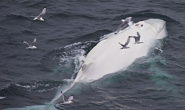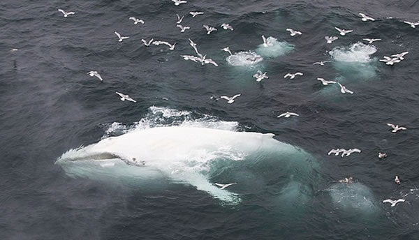 挪威海域惊现罕见白色座头鲸